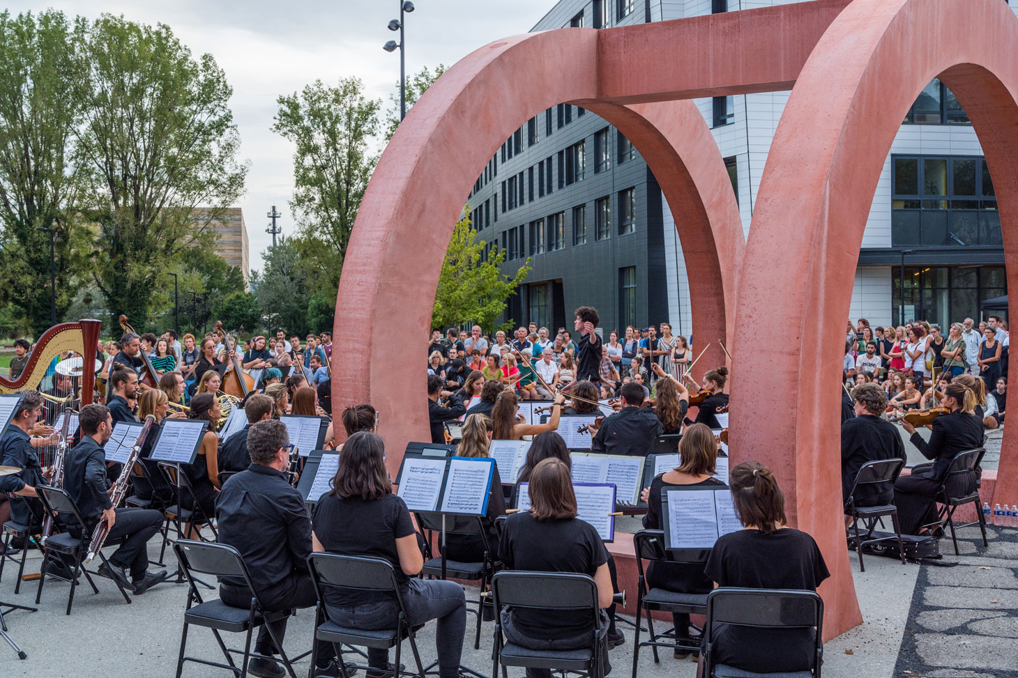 e siècle. Enfin, cette œuvre constitue un lieu de passage, de restauration, de convivialité et même de fête, en devenant le trait d’union entre le RU Diderot, l’un des plus grands restaurants universitaires du campus, EVE (Espace Vie Etudiante), foyer de la vie étudiante et associative, et EST (Espace Scénique Transdisciplinaire) lieu culturel majeur avec ses studios de répétition et sa salle de spectacle.