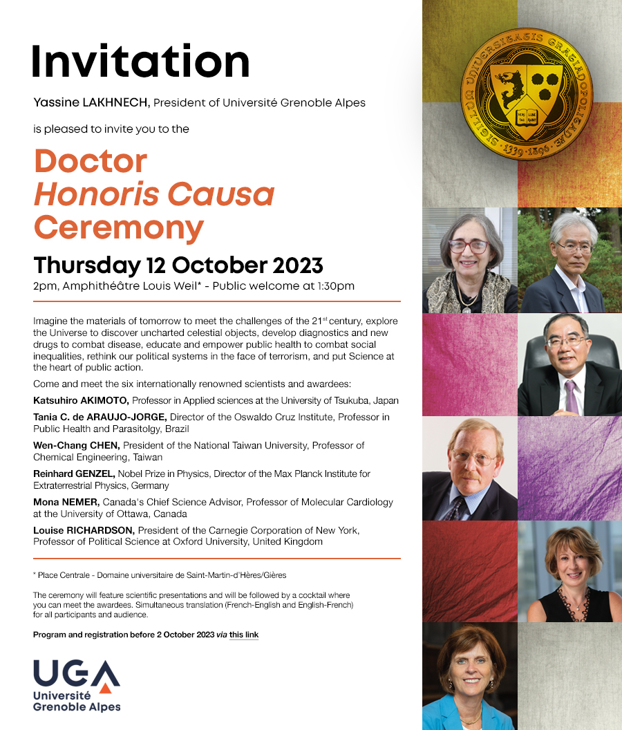 Honoris Causa from Université Grenoble Alpes for the excellence of their research, their outstanding contributions to the arts, humanities, sciences and technology, and their links with Grenoble Alpes University.